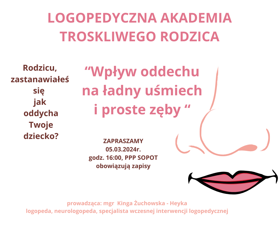 TEMAT: „Wpływ oddechu na ładny uśmiech i proste zęby” - o tym czym jest normatywny wzorzec oddechowy oraz jak oddech wpływa na kształtowanie się zgryzu. W planie część warsztatowa: nauka wydmuchiwania nosa.